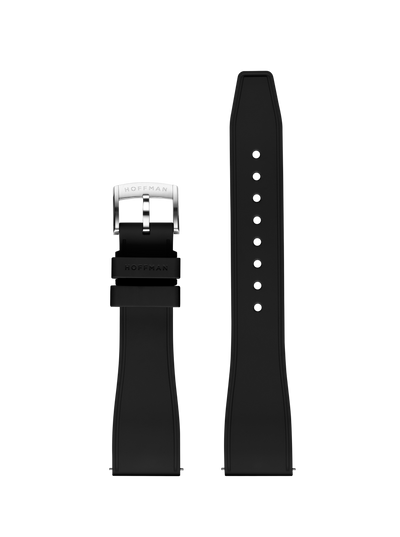 The strap measures 20 mm at the lugs and tapers to 16 mm at the buckle. It is fitted with a redesigned brushed and polished 316L stainless-steel tang buckle for enhanced comfort and wearability.