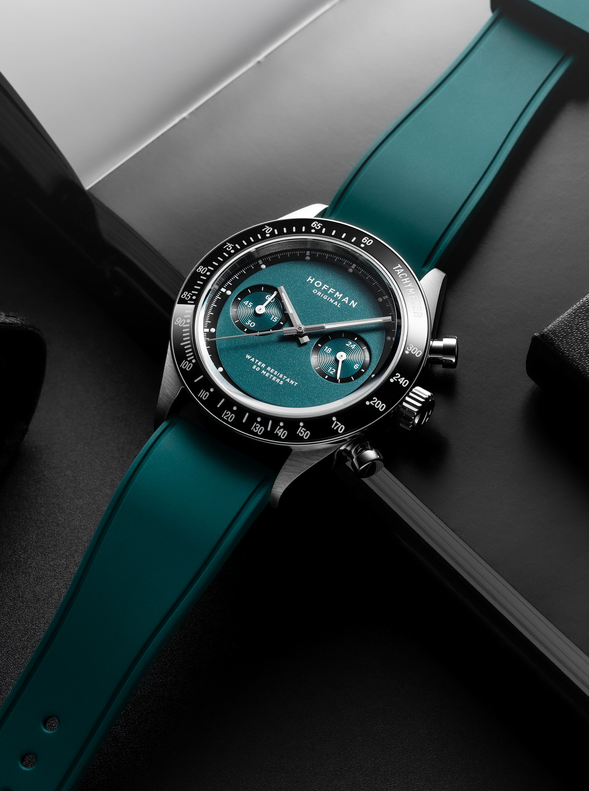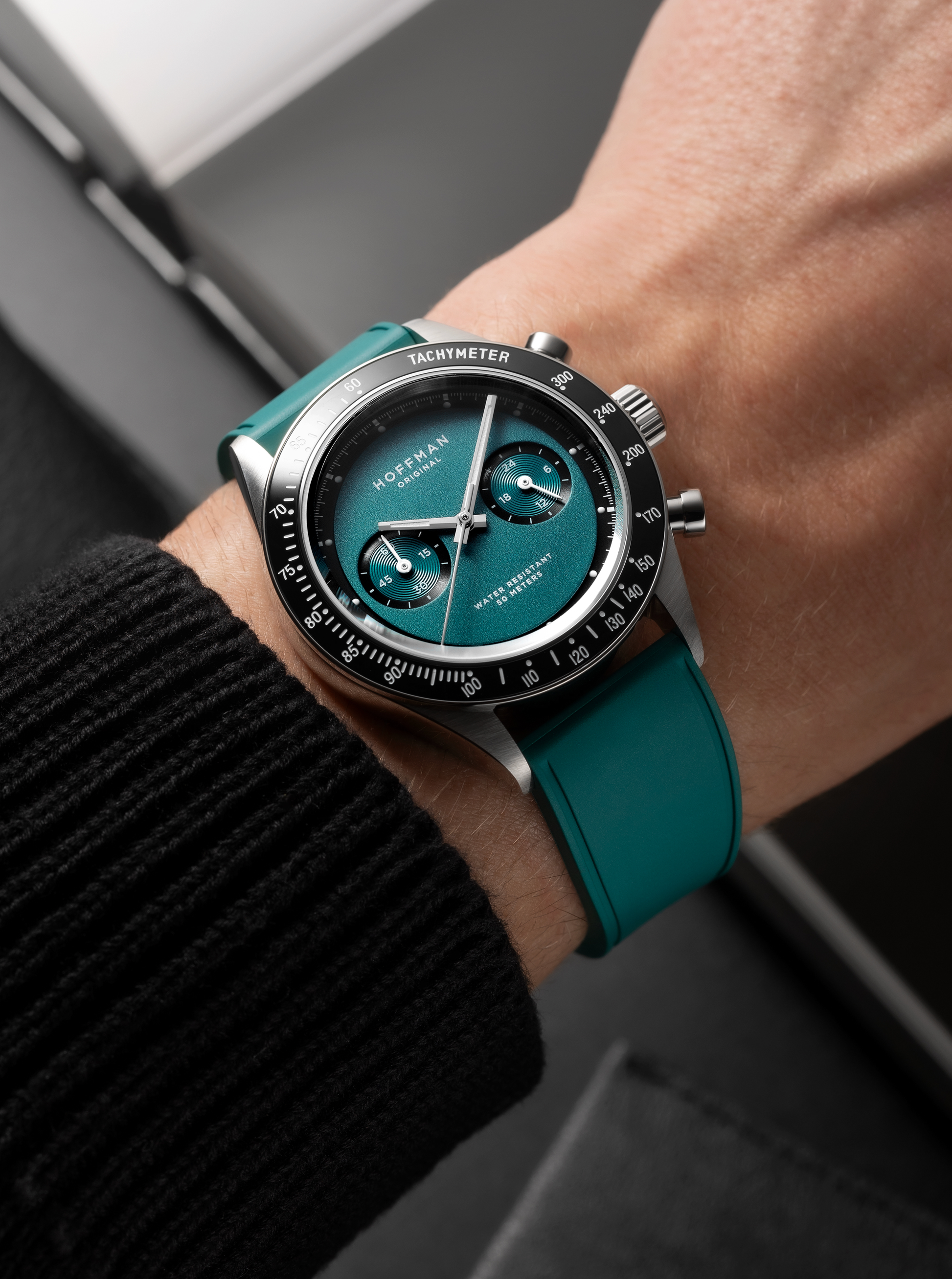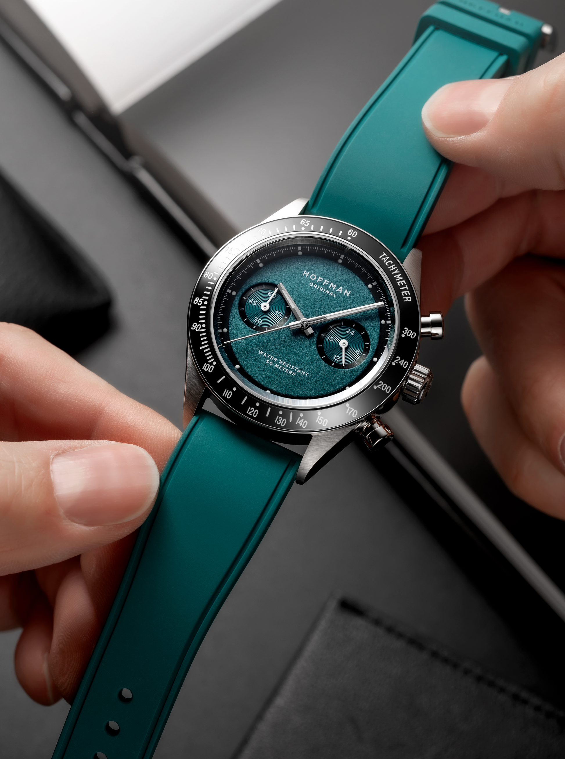 20mm FKM rubber strap with quick-release, tapered to 16mm.